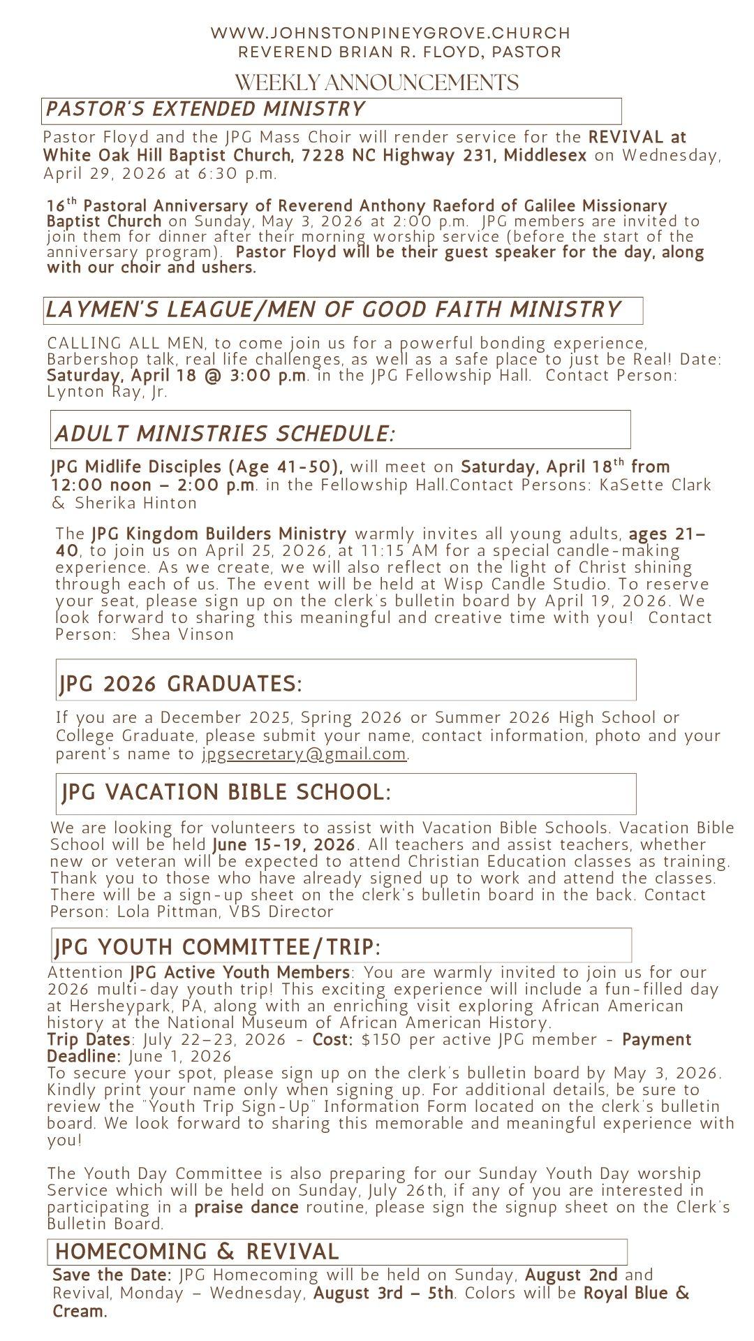 Thank you for faithfulness and making a commitment to your walk with Christ. If you should have any questions, do not hesitate to contact us.