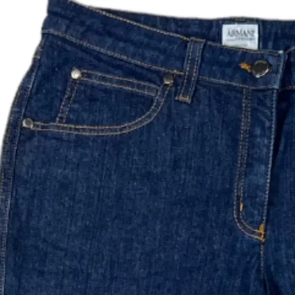 Armani Collezioni Blue Jeans, featuring five convenient pockets that combine fashion and functionality. These jeans are designed to keep you stylish and organized, with two front pockets, two back pockets, and an additional coin pocket. Carry your essentials with ease while maintaining a sleek and refined look. Whether you're heading to a casual outing or a night out with friends, these jeans will keep you effortlessly chic and fashion-forward.Embrace timeless style and a flattering fit with Armani Collezioni Blue Jeans, featuring a secure button and zipper closure. The well-crafted closure ensures a comfortable and secure fastening, allowing you to move freely while maintaining a polished appearance. Brand: Armani CollezioniColor: Blue Size: IT 4/US 8Measurements: - Waist 30 in- Rise 9 in- Inseam 31 inFabric: 98% cotton, 2% elastaneCondition: Excellent
