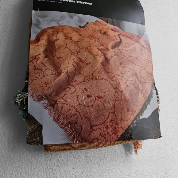 This piece is rare!! HTF item.This throw is perfect for the home of a Care Bears lover! I've seen only 2 other people selling this item and theirs is not in new condition. This is brand new to you or whomever you're giving it to. It is stuck a staple piece, it's got fringe on all 4 sides, but 2 have a colorful fringe that stands out! My price is firm but I am willing to consider any reasonable offers. Please send me an offer using the offer button, and I can either accept or counter offer.