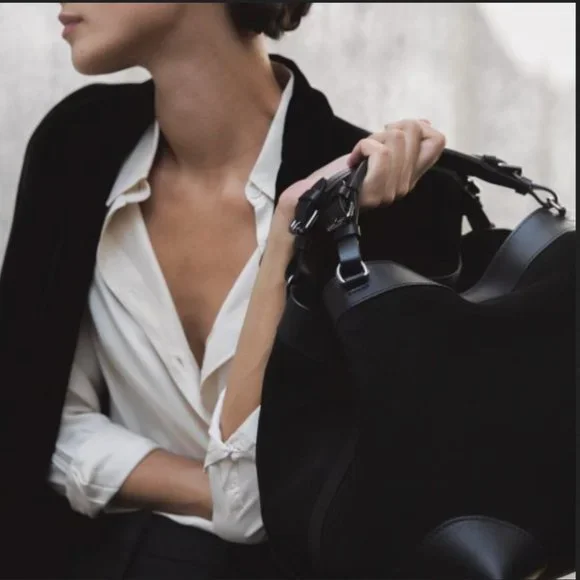 New never worn, never carried!! Caroline De Marchi Cubo Black Leather Bag PurseSuperb Cubo bag in marvelous, very supple leather in a beautiful luminous black color. Inside is purple suede! Metal feet at base. Big slouchy bags are very in style. Straps are snakeskin deep purple. Very luxurious, won't disappoint. Some faint scratches as shown in photos. Comes with original dust bag. No returns final saleDimensions: L 13.5” x H 12” x W 9”