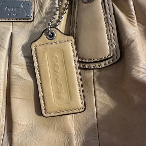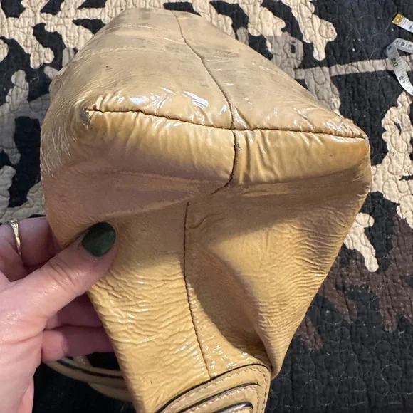 Beautiful and stunning Coach Kristin Yellow Patent Leather Satchel Handbag in pretty good condition. Interior has a couple freckles and there’s a few on the outside. No wear on handles, strap, or bottom of bag. I did not try to clean this bag but it’s an easy and quick job. Measurements are shown in the pictures. Questions in comments.