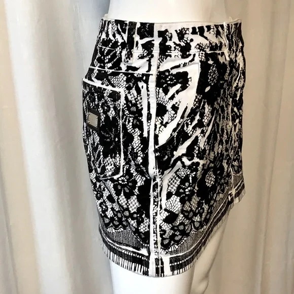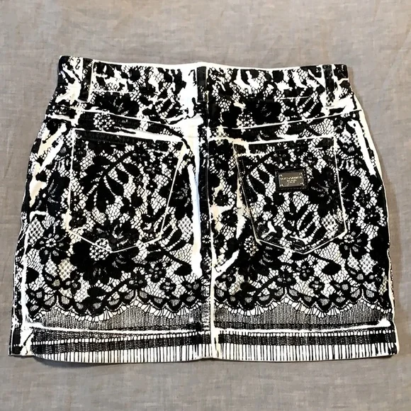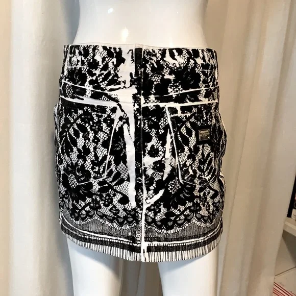 This D&G mini skirt is so amazing! Crisp black & white lace print reminds me of Valentino, but a bit edgier. Size IT 42 converts to US 6 per brand. EEUC. This skirt was only worn once; print is super crisp and like new. Black screen printing is even a bit shiny still. No fading, no flaws!*Bundle to Save* CHECK OUT THE MATCHING SHOES!
