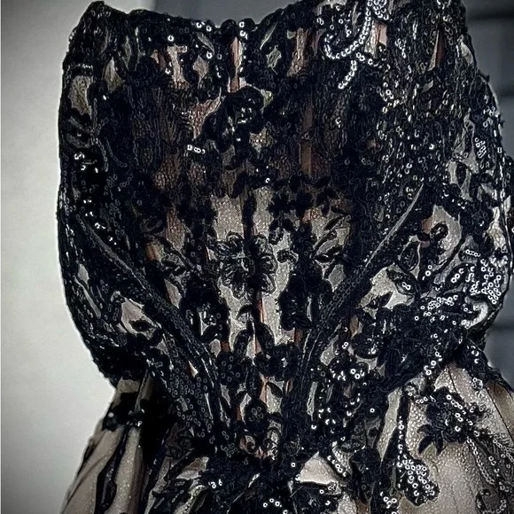 Stunning wedding gown with intricate black lace details on a cream base. Perfect for a memorable occasion.This is a 2024 Sottero & Midgley Norvinia. This dress new retails for $3500 plus I did $1500 in alterations. The dress was worn for just about 40 mins tops just for ceremony and pictures. I changed into a short matching dress for remainder of wedding. I have not had it dry cleaned since I didn’t wear it very long. There’s some dirt marks on the underside of the dress from being indoors and you will not see when you have it on. This will happen when you wear it as well. This is a size 10 with a bra insert with straps for tightening. There’s been alterations done to the waist with 5 bustles added which are pointed out in the pictures.This does have straps you can attach if you don’t want strapless. I’m 5’4, 34D and 133lbs when I it was altered. It can be altered more in and or let out.I had 4inch wedges on for the wedding. I’m asking $2000 OBO
