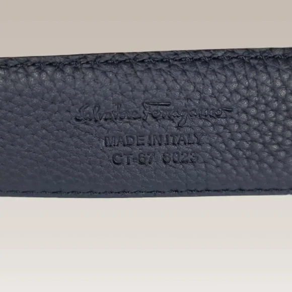 Salvatore Ferragamo offers up the finest Italian-made accessories, in case you couldn’t tell from a cursive glance at this exquisite belt. Crafted from soft and supple leather, the outfit-completing accessory is complete with the label’s Gancini detail in a gold-tone finish.Brand New Reversible: Black / Blue Comes with the Original Dust Bag and the Original Box. Size: 100 / 40 Width: 1.5" Made in Italy ***PLEASE NOTE that I am not a store. Though I stand behind every item I sell,I do not provide receipts, guarantees, or guarantees. All sales are final, once you have purchased an item and confirmed the purchase. In order to avoid any issues, if you have any questions or concerns about an item, we encourage you to ask all of your questions before making a purchase. If you are not sure, please do not purchase.