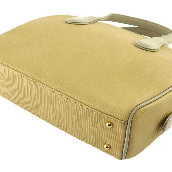 [State]It is a very good condition without big damage.Outside repair mark (thread coloring). Other threads (with inner & pockets) There is a general feeling of use such as scratch dirt fittings and bald. Size:Width: about 23 cm ~ 26 cmHeight: about 19 cmMachi: about 7 cmHandle: Approximately 11 cm from the main unit Color: Beige Gold Number of pockets:[Opening]Fastener[Inside]Fastener pocket ~ 1 MaterialLeather