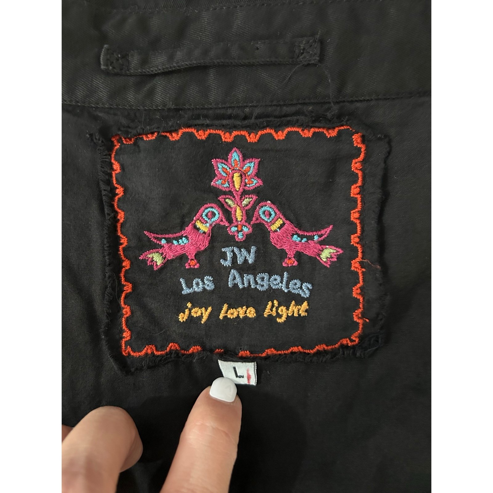 The Johnny Was Pink Embroidered Black Utility Jacket is a stylish and versatile piece perfect for various occasions. Made from 100% cotton with a canvas fabric type, this mid-length jacket features long sleeves and a zip and button closure. The floral pattern and embroidered accents give it an artsy and bohemian vibe, making it a standout piece in any wardrobe. Ideal for travel, parties, or casual outings, this jacket is machine washable and designed for a regular fit, catering to a comfortable and fashionable look for the winter, fall, and spring seasons. Gently used.