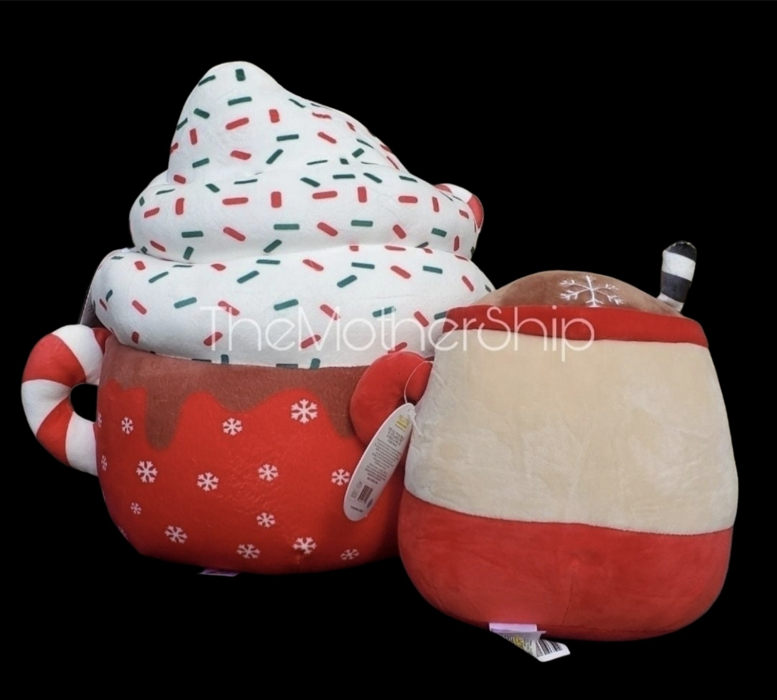 Brand new with tags. Listing includes ADORABLE 12" + 8" Marshina the hot cocoa Squishmallows. "COCOA" is embroidered on 12". Snowflakes are embroidered on 8".