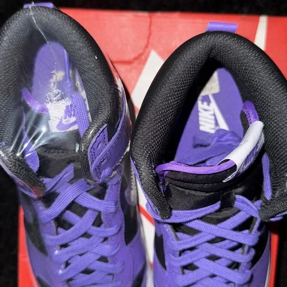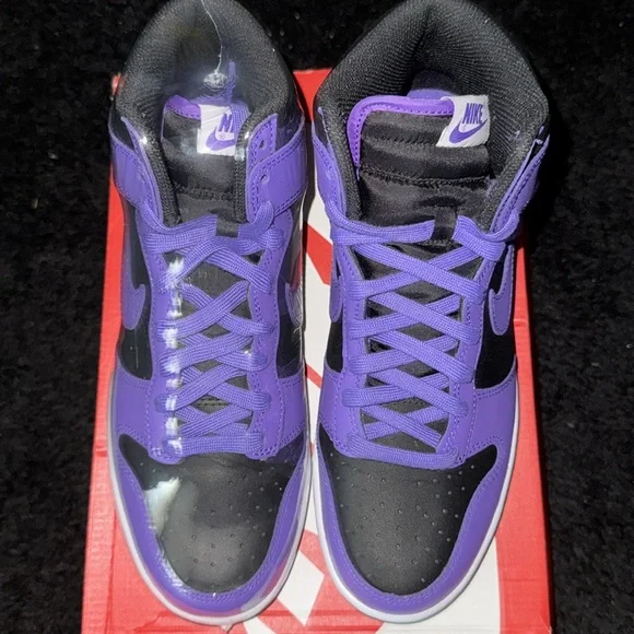 The Nike Dunk High Retro BTTYS TCU hoops return with a two-tone color scheme covering the crisp overlay and base. It features a black leather base superimposed by contrasting Psychic Purple hues. In line with the main Psychic Purple/Black/Psychic Purple/White colorway, the Nike Dunk High extends the Psychic Purple color to the eyelets, laces, lining, insole, and lateral Swoosh. The black accent apart from the base upper, only resurfaces on the ankle liner and mesh tongue. The rest of the silhouette keeps the vibrant purple hues for a clean finish. A white foam midsole separates the leather upper from the purple-colored rubber outsole. The outsole features serrations for increased traction. Finally, a Swoosh that extends from the lateral to the medial walls around the heel pull tab completes the design. What our experts love about the BTTYS TCU sneakers is the blend of black and purple colors on the all-leather construction. This combination gives the kicks a bold design. The Nike Dunk High Retro BTTYS TCU was released on January 18th, 2023