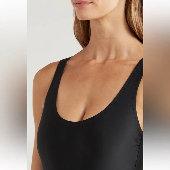 NWTSize XLcolor is black noir Elegant and timeless, this black swimsuit offers a sleek and flattering fit. Perfect for any beach or pool day.A sleek square neck brings sophistication to this shapely one-piece swimsuit that's begging for a refreshing dip.• Square neck• Moderate back coverage• Lined• 80% recycled nylon, 20% spandex• Hand wash, dry flat• Imported