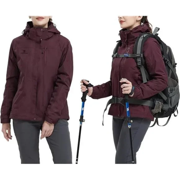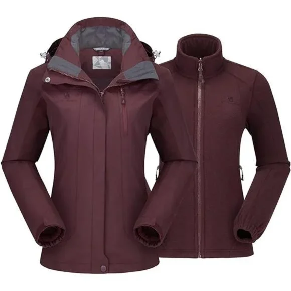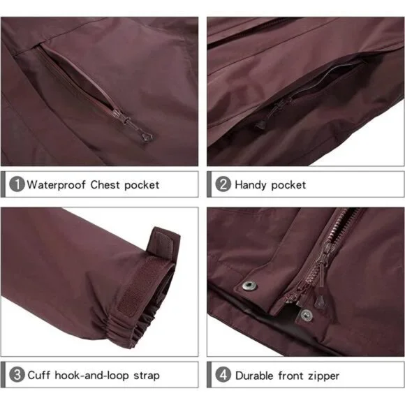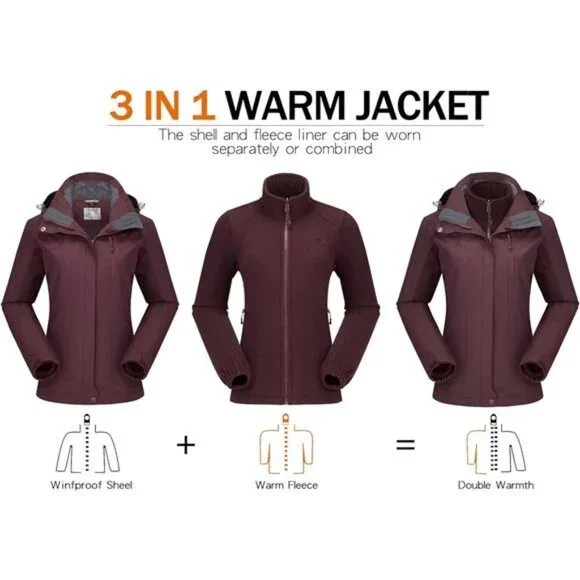 Size:Medium*❄3-in-1 design: 3 in 1 womens ski jacket for all weather conditions on the slopes, combines with a shell and an inner fleece jacket. The shell can be as a windbreaker in spring and autumn. Anti-static inner fleece jacket makes great heat retention, keeping you warm and comfortable in deep autumn. The shell and fleece liner can be combined to fully seal to prevent cold in frost winter.*❄Waterproof & Stain-repellent: This waterproof shell jackets are made with technologically waterproof fabric with 10000mmH2O waterproof index. It is fully sealed to prevent water and stain from seeping inwards so that let you easily deal with outdoor rainstorm climate calmly.*❄Windproof: The windproof shell jackets are made with Teflon material imported from America, and processed with a windproof film to strengthen windbreak effect. Besides, Elastic cuffs with hooks-and-loops, adjustable hoods with a chin-guards, double forepart,seamless zippers help to keep the wind out in storm winter.