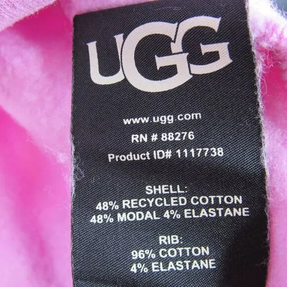 Made from 48% recycled cotton, our two-sided brushed fleece offers a fluffy-soft feel inside and a clean, sweatshirt-like finish on the outside. Adding this cozy, versatile material to a cute cropped hoodie silhouette with rib knit cuffs and stylish drop-shoulder construction, the Keira is available in a wide range of fun colors, and features graphic logo embroidery at the back of the hood for extra punch.Cropped hooded sweatshirtShell (Brushed Fleece) - 48% Modal / 48% Recycled Cotton / 4% ElastaneLining - UnlinedDrop shoulderRib knit V-inset detail at necklineDrawcord (100% Polyester) with rubber dipped endsDyed to match rubber coated eyeletsRib knit cuffsRaw edge hemInternal velvet trim at back neck and hood openingEmbroidered UGG graphicNEW NO TAGS RED MARK ON SIZE TAG TO PREVENT FRAUD RETURNS