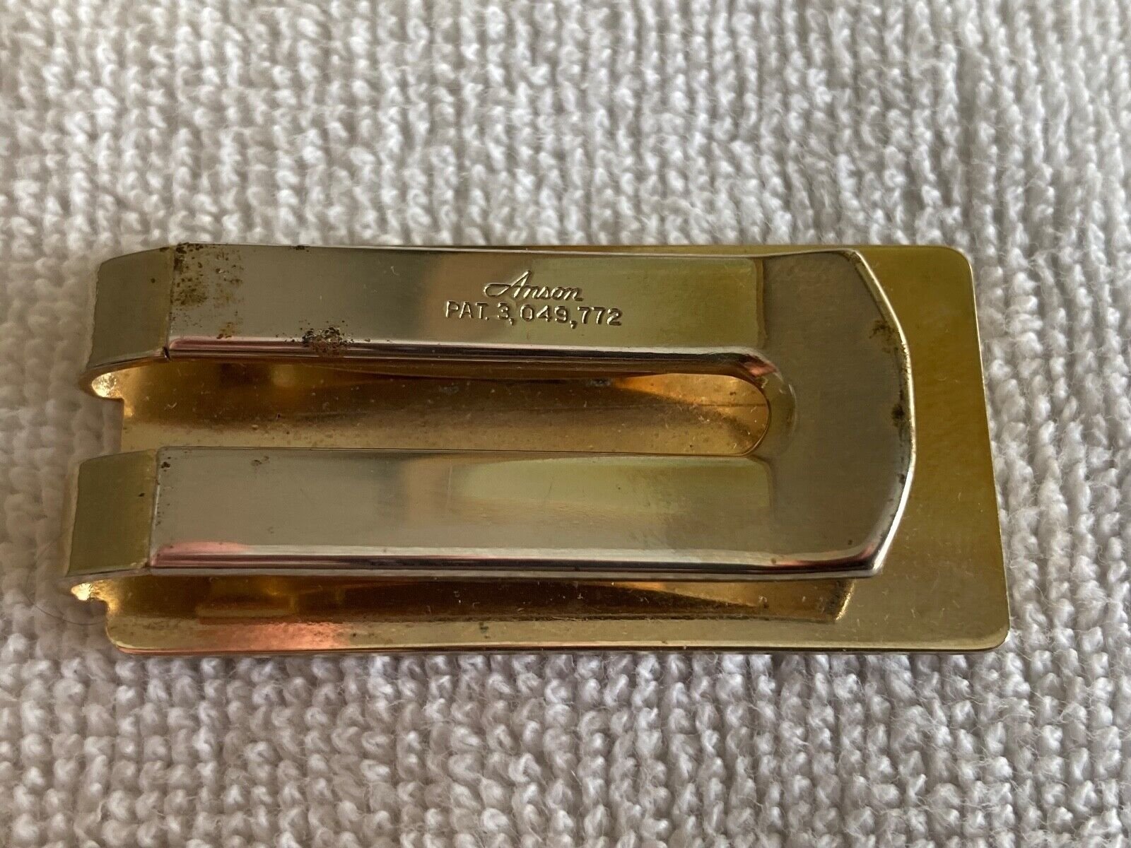 This vintage Anson money clip is perfect for men who want to keep their bills and cards organized in style. The gold tone finish adds elegance to the design, while the blue cross blue shield logo adds a unique touch. Made in the USA with copper alloy material, this unit is durable and can hold up to regular use. Whether you're using it for everyday use or for special occasions, this money clip is a great addition to any gentleman's collection.
